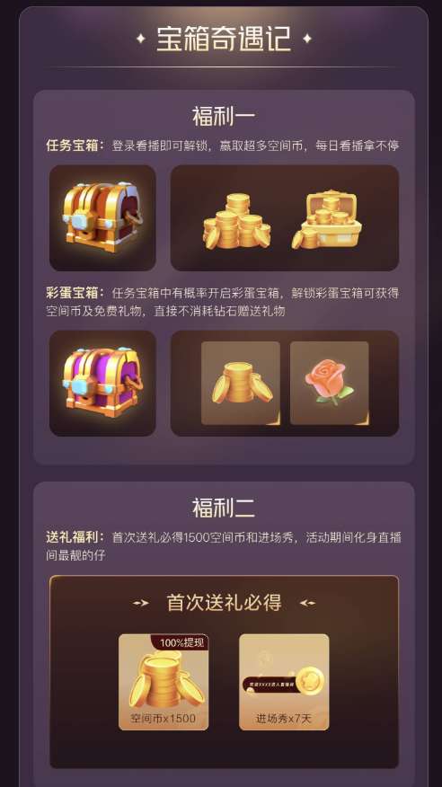 进入PICO首页>点击活动“VR直播3周年庆典”进入PICO视频首页>点击右侧三周年活动宣传图进入直播间>点击“宝箱奇遇记”